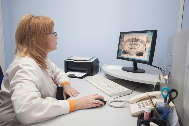 В кабинетах нашего медицинского центра установлены новые, импортные стоматологические установки фирмы ADEC (США). Сделаны на основе новейшего высокотехнологичного оборудования. Позволяют с легкостью изменять положение кресла. При этом изменяется как наклон спинки, так и положения ножной области сидения. Управление с помощью ножной педали или пульта дистанционного управления значительно упрощает действия дантиста, а значит, позволяет не отвлекаться от процесса лечения. Красивая, изящная, а при этом практичная и долговечная медицинская мебель от известной компании ARTINOX, которая используется во многих стоматологических клиниках, не только создает комфорт в кабинете, но и удобна в использовании медицинским работникам. Один из самых сложных этапов работы при лечении сильных заболеваний – глубокий кариес, парадонтоз или парадонтит, это обработка каналов. Использование интраоральных (внутриротовых) видеокамер позволяют отслеживать точное нахождение приборов и правильность их введения. Возможность передачи изображения непосредственно на монитор позволяет пациенту наблюдать за всем ходом лечения.
